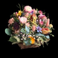 Gesteck mit Steckschaum, in einem Korb. Bild zeigt Grösse M.
